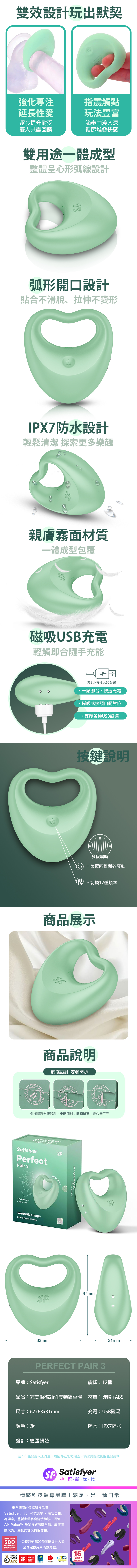 品名:Satisfyer|Perfect Pair 3|完美搭檔 陰莖環震動器 綠